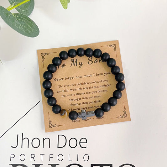 Cross Bracelet for Son, Black Tiger Eyes Beads Bracelet Birthday Graduation Gifts for Son