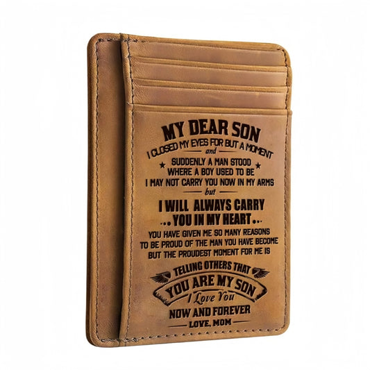 To My Son Engraved Leather Pocket Wallet YOU ARE MY SON