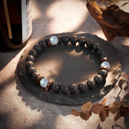 Natural Stone Bracelets for Men-Lava and Moonstone